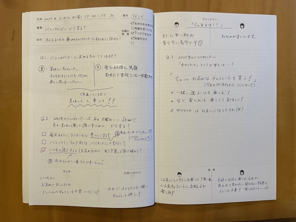 そんな予感が渦巻くなか、分刻みで埋まったスケジュール帳とにらめっこしつつ、私たちはその年にはじめて「バレンタインデーの過ごし方」を議題に据えて『夫婦会議®』をしてみました。
