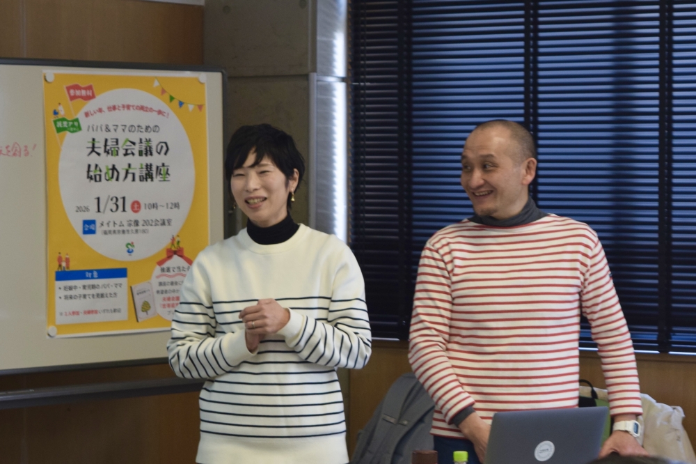 2026年1月31日(土)は、宗像市男女共同参画推進課主催の仕事と子育ての両立支援の一環で、パパ&ママのための「夫婦会議の始め方講座」を開催。