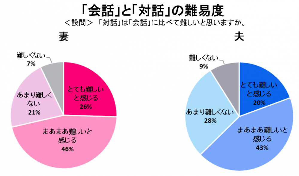 一方で、妻の72%、夫の63%が「対話は会話と比較して難しい」と感じている。原因は…